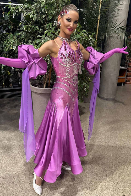 Evalina Asymmetrical white top for ballroom dancing and latin