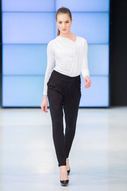 ( ilość produktów: 50 )Chiara Casualowa drapowana dzianinowa biała bluzka. Office look