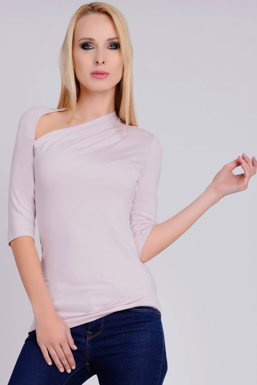 ( ilość produktów: 2 )Catherine Asymetryczna dzianinowa pudrowa bluzka z rękawem 3/4 na lato
