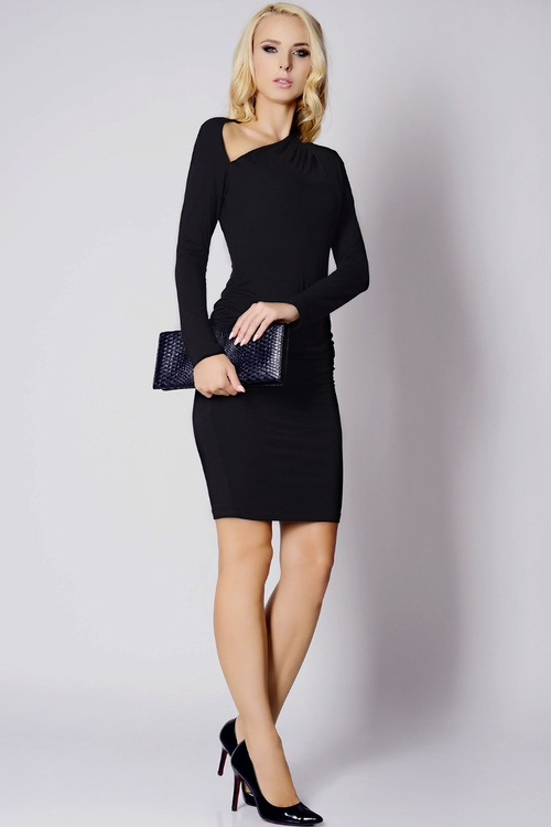 Nevies Asymetryczna rozkloszowana czarna sukienka z dzianiny