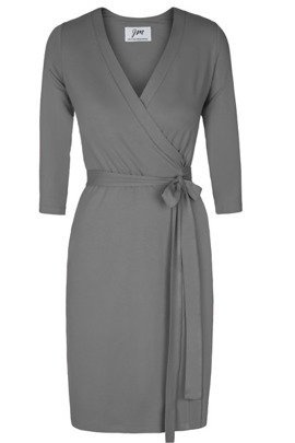 Sukienka kopertowa wiązana w pasie midi ołówkowa z cienkiej dzianiny, sukienka do biura, szara, Dina