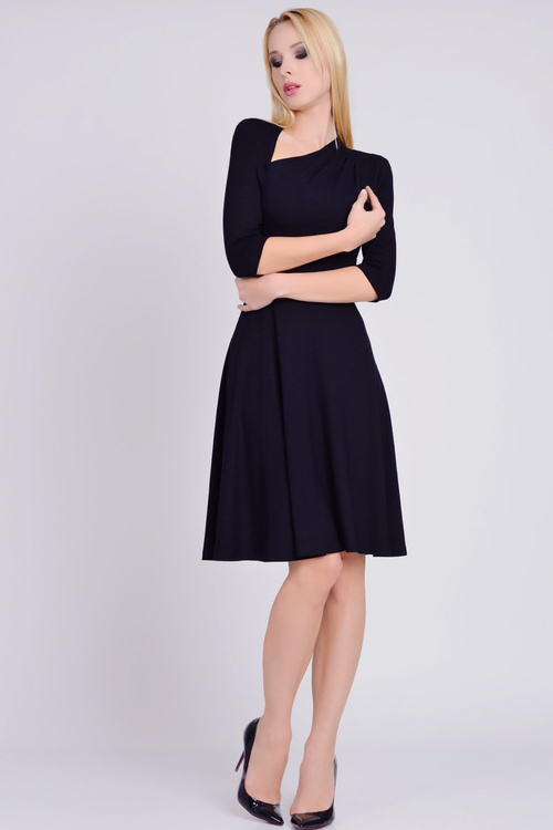 ( ilość produktów: 7 )Nevies Asymetryczna rozkloszowana czarna sukienka z dzianiny