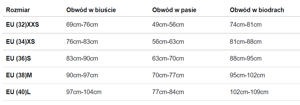 | EU 36(S) 155cm wzrost | do 140 cm | od 150 do 155 |